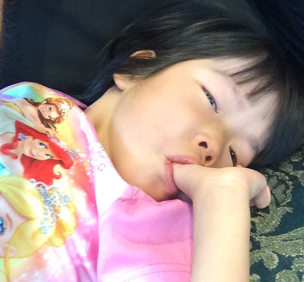 Lilyan has continued to settle in and do so well with her new family. We really have never seen a child adjust so quickly and smoothly. She’s the most genuinely joyful and contented child we’ve ever met. That really is not an exaggeration. We’ve completed most of her initial evaluations, and every doctor who has seen her — every test she’s had done — has confirmed what we already suspected. She has many severe disabilities and trunk deformities, and a very long road ahead of her. Our spine surgeon has chosen to hold off on any surgeries for now, tentatively planning to begin this work sometime next year. In addition to her obvious (and already known-to-us) medical challenges, though, she also suffers from horribly debilitating headaches. These come on very suddenly and leave her unable to do anything but lie flat or in our arms and suck her thumb — often with tears coursing down her little cheeks — until they pass. Each headache lasts anywhere from thirty minutes to three and a half hours, and we have found no pattern to when they occur. They don’t seem to be food-, sleep-, stress-, or environmentally-related. She might have two in a day, two or three in a week, or she might go as long as ten days without any before one hits her again. She’s been through quite a few tests as doctors continue looking for the cause of these headaches. We have more tests and appointments scheduled, and we will also continue to keep you posted here about what we learn. We would cherish prayers for answers. It’s heartbreaking to watch her suffer like this. Enjoy some of the pictures of this joyful little one. You will see in a couple of these just what a change comes over her when her headaches hit.