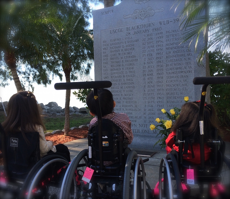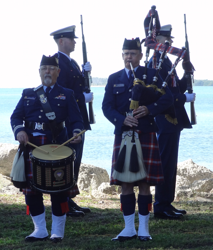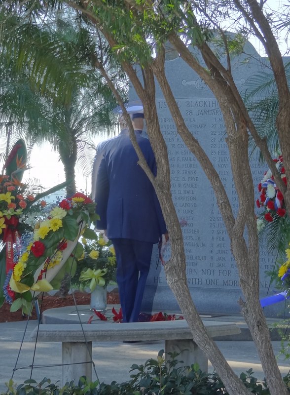 This morning, we got up very early so we could make the hour-plus drive back to St. Petersburg for the ceremony. When a USCG helicopter flew low over the bay, tilted, opened the side door, and dropped a wreath into the water, this set the stage for the storm of emotions to follow over the next few hours.