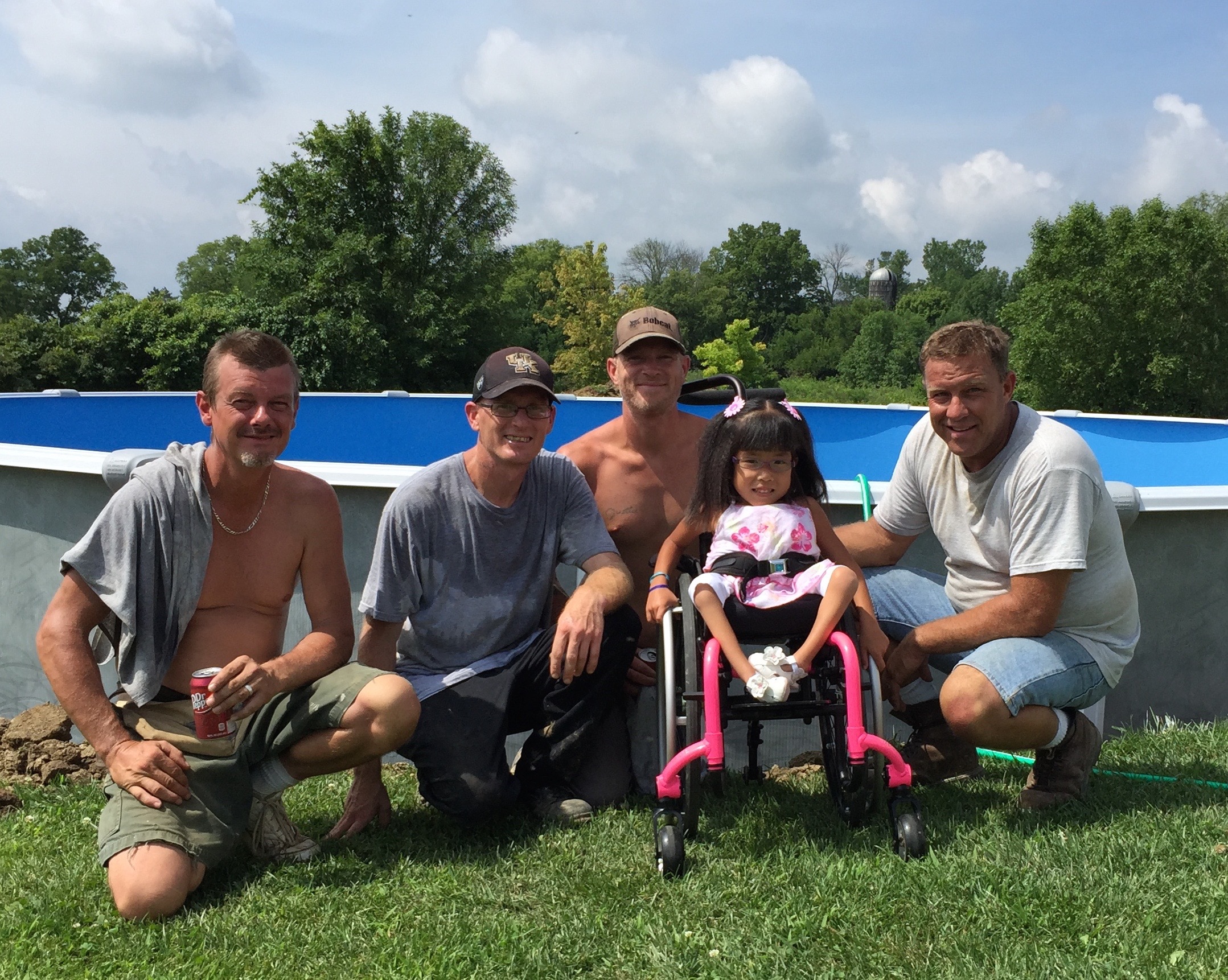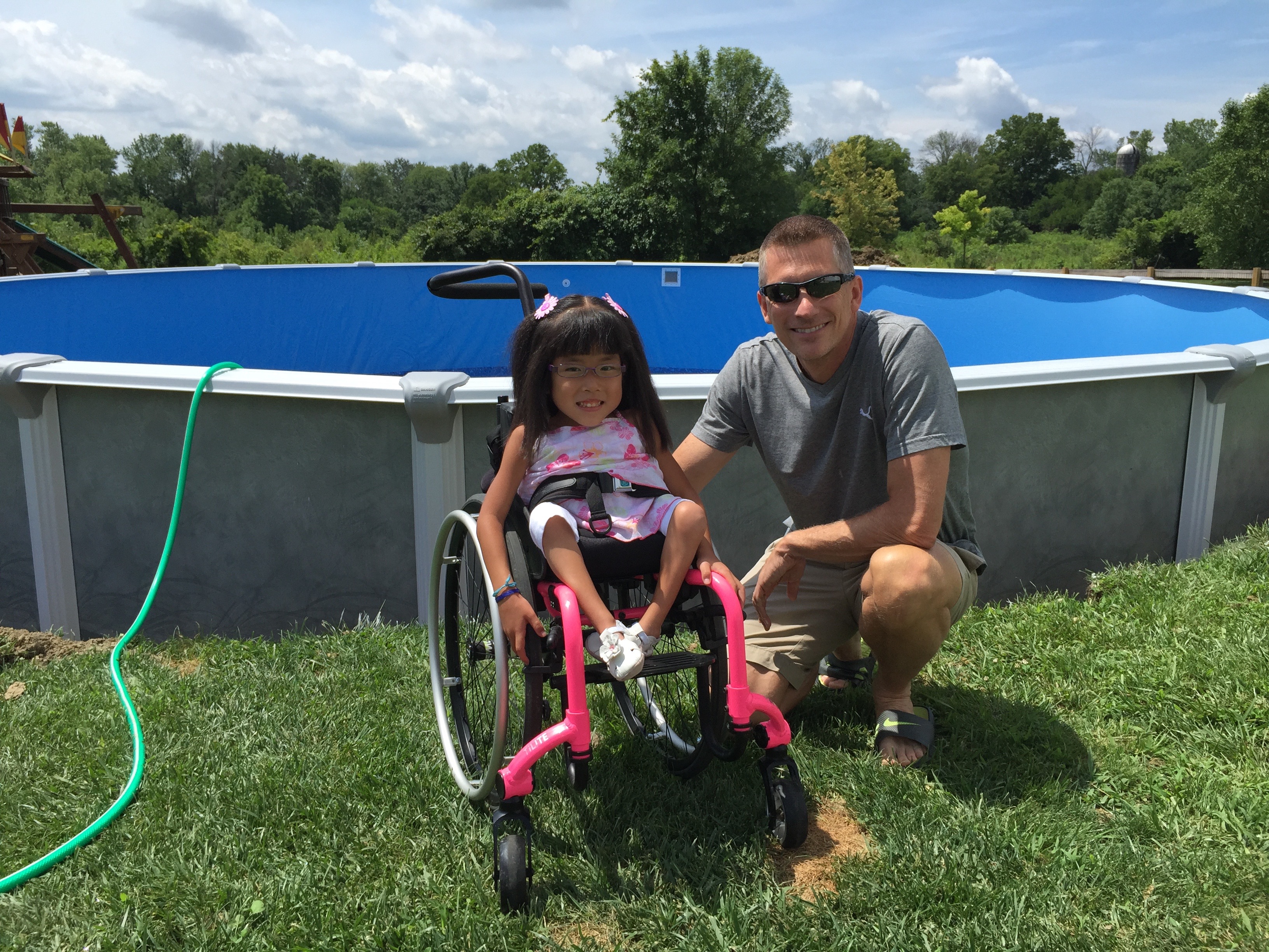 A few months ago Lilyan was, amazingly, granted a wish from Make-a-Wish. (Jaden was, too, but his is still in process, so more about that later.) Lilyan’s wish was for a pool “so my whole family can swim together.” We didn’t expect this to be something that Make-a-Wish could do, and it did turn out that they have a policy that prevents them from installing in-ground pools. But last Friday, they called to say that they had approved a very large above-ground pool for Lilyan’s wish and that it would be installed on Monday!