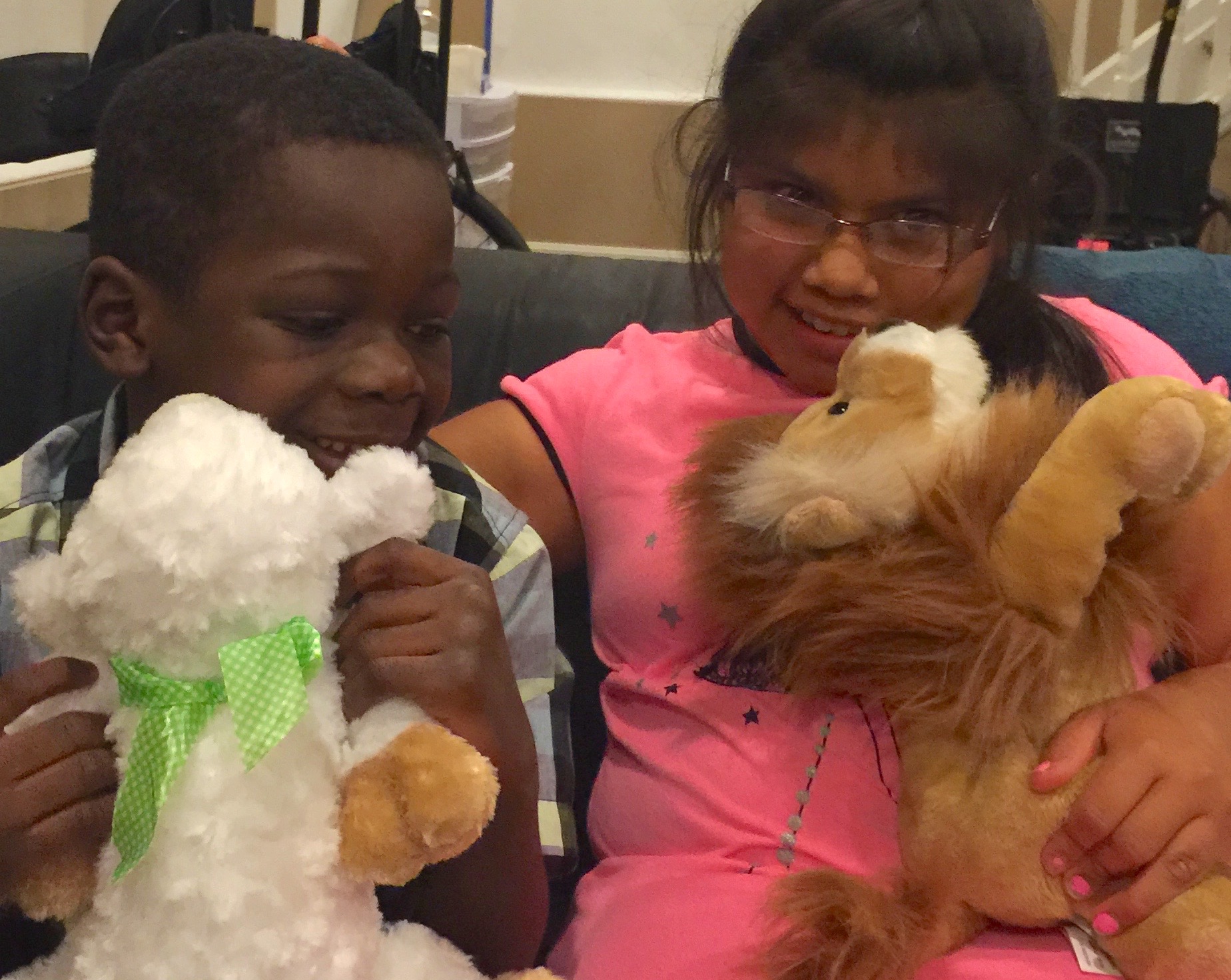 Letting Kathryn hold Lion while he snuggles his TSC lamb. He knew all TSC kids got one of these and that there was one of these waiting here at home for him. He couldn’t wait to get it.