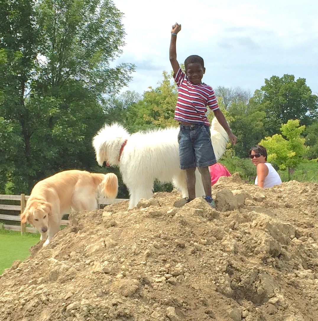 The kids spent a day playing in the dirt pile made by the pool prep. Nolan was so proud of himself when he climbed to the top of this pile of dirt.