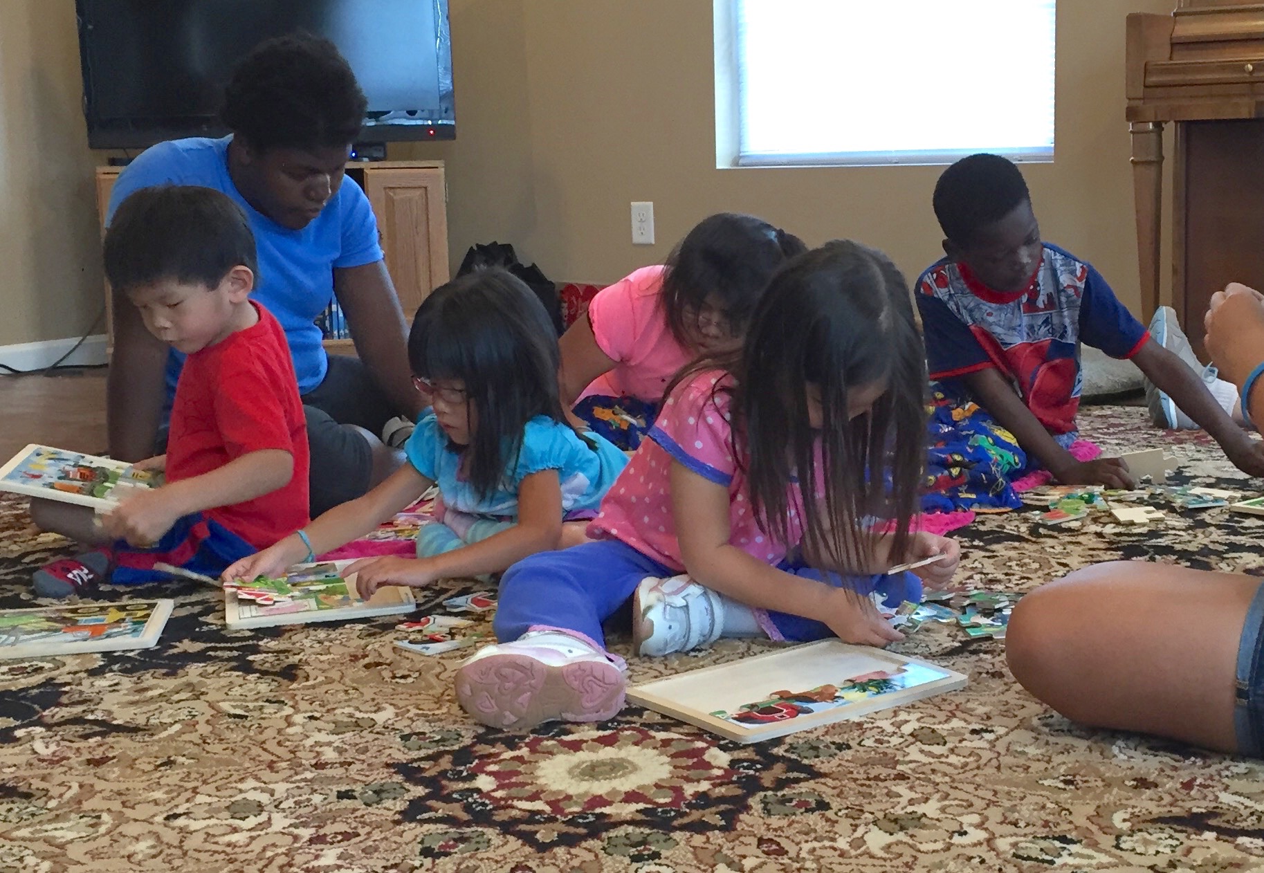 Within the first week, Nolan learned to sit and play puzzles quietly with the other little ones during our family reading time in the evenings