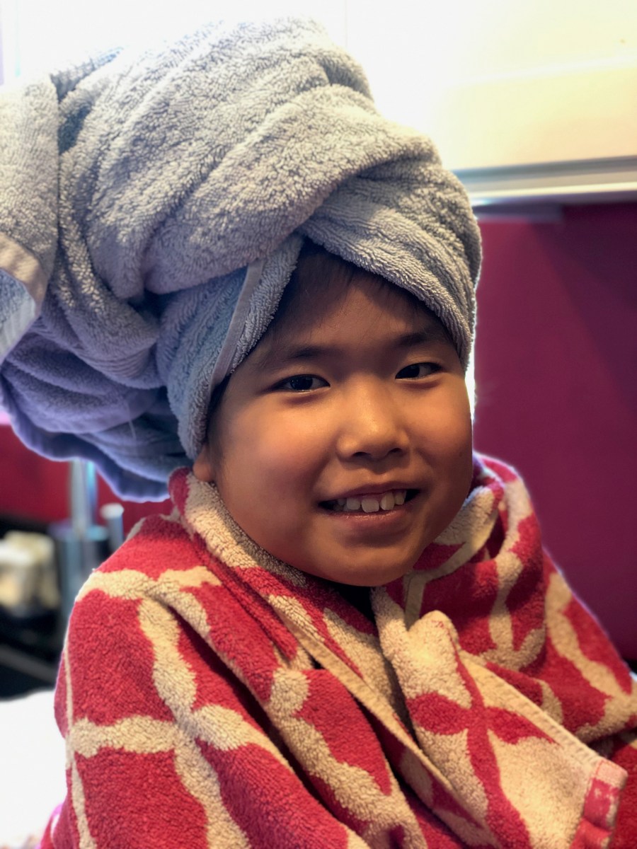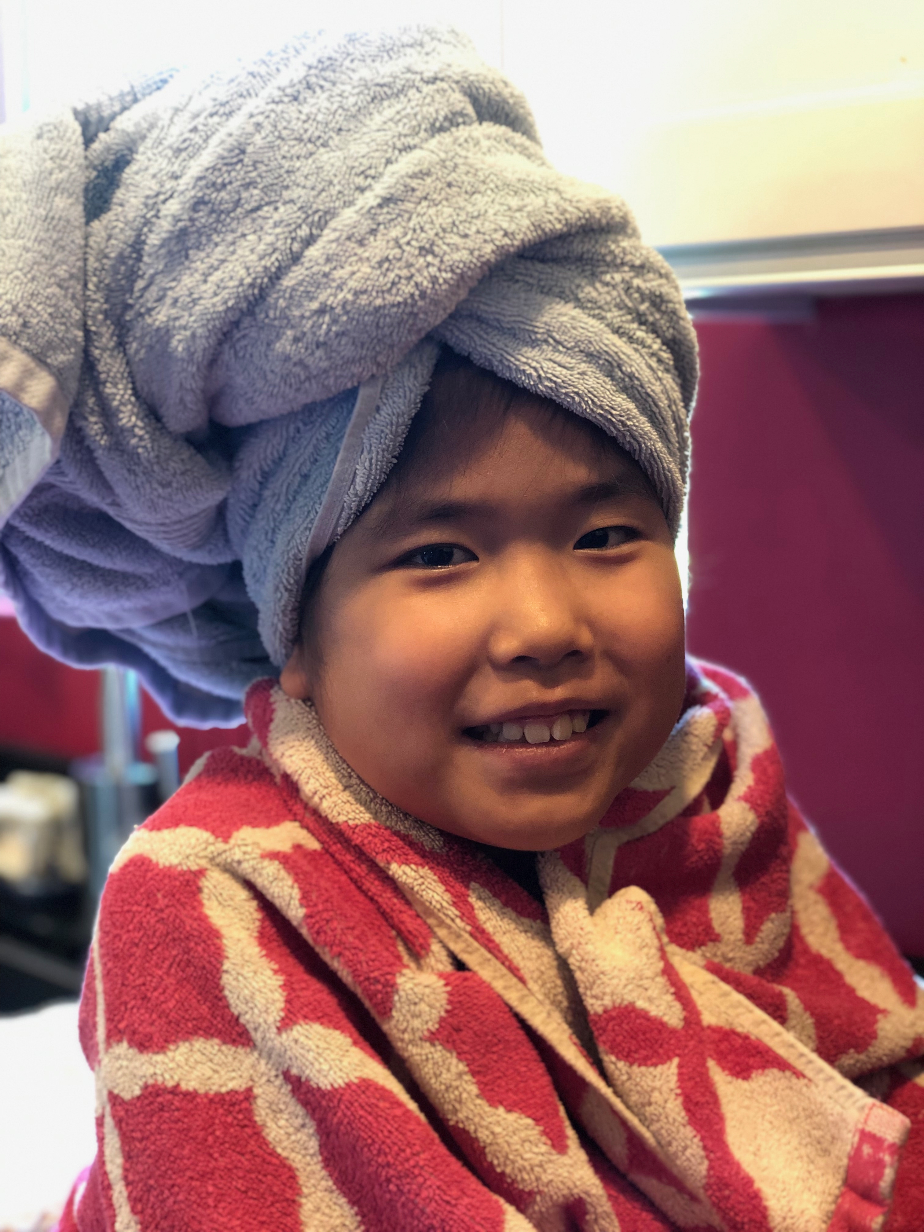 After our church service, Lilyan got a good hair-washing with some help from her sisters who love her so much.